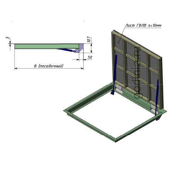 Облегченная модель с гнутыми элементами в раме с наличником из гнутого в профиль стального листа 3 мм со смещенными за ось открывания петлями через вырезанные в корпусе ниши. Каркас двери с обвязкой выпускается из профильной трубы 30х20. Заполнение створки - лист ГВЛ влагостойкий с подготовкой под наклейку керамогранита. Консультация с менеджером по эксплуатации перед покупкой обязательна!
